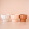 Perfect for succulent + cacti arrangements, a potted plant and more, the Presley Pedestal Pot in the shade Ballerina features a ribbed pedestal that gives it a stylish texture that's just enough to stand out from the crowd! . Material | Ceramic . 4.5" dimensions | 4.5” diameter x 3” high | Fits 3.5" grow pot . 5" dimensions | 5.25” diameter x 4.375” high | Fits 4" grow pot . 8" dimensions | 8” diameter x 5” high | Fits 6" grow pot . Drainage hole included with Silicone Plug .