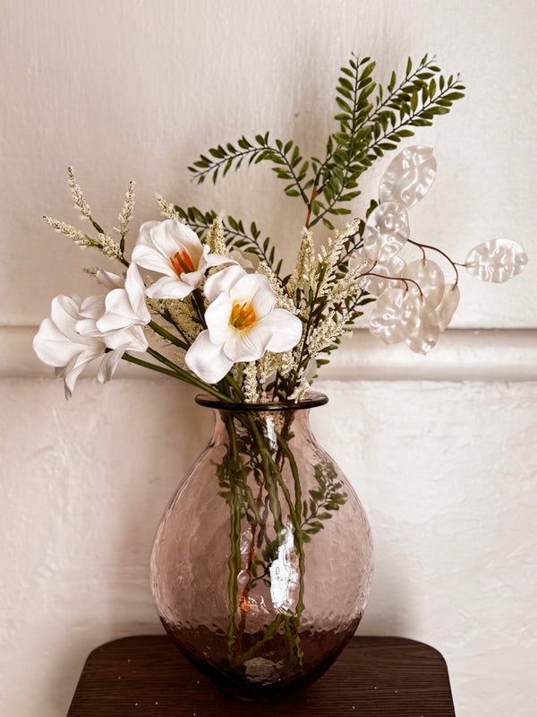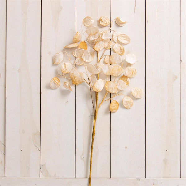 This unique spray contains large stems and beautifully captures the milky, translucent color of silver dollar leaves, mirroring their natural beauty.